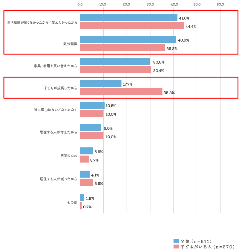また子どもがいる方の傾向を見たところ、「子どもが成長したから」という理由でもレイアウト変更を行っていることが分かりました。