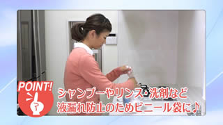 同じように、お風呂場のシャンプーやリンス、トイレ用のブラシや洗剤もビニール袋に入れましょう。