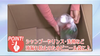 液がもれていないかを確認して、ダンボールに入れましょう。