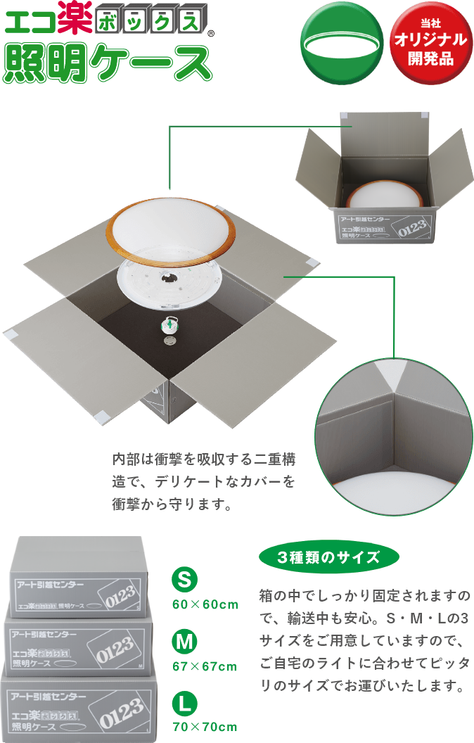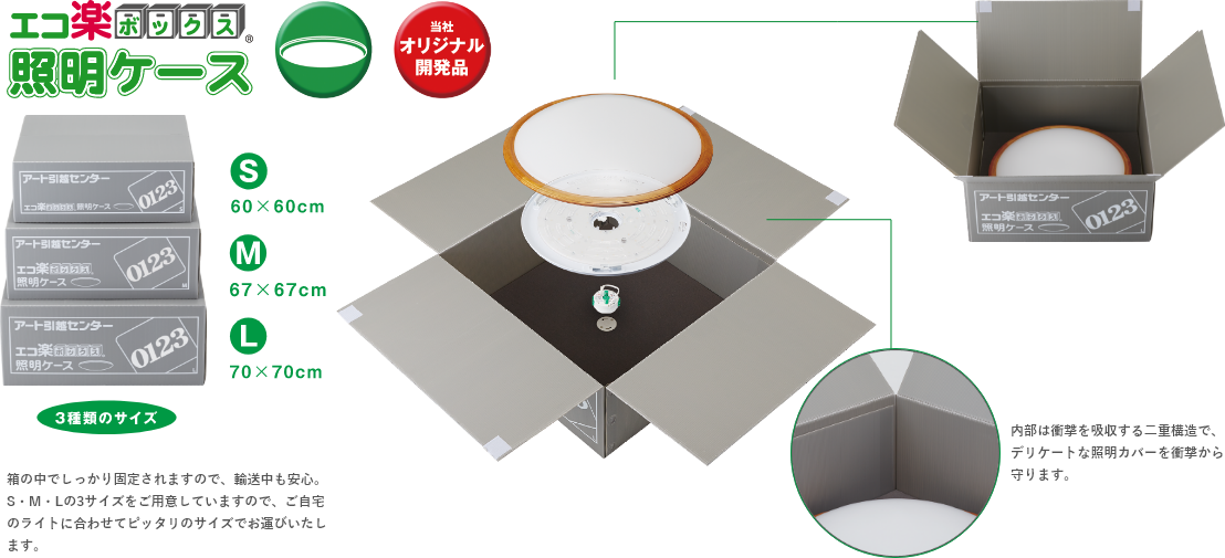 簡単便利なエコ楽ボックス 照明ケースは、お引越当日にムービングスタッフがご用意します。